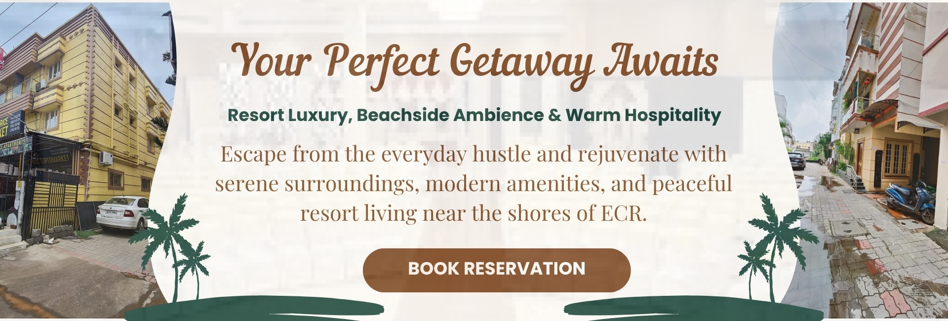 ECR Group of Hotels, Resorts & Restaurant brings you a unique hospitality experience rooted in comfort, care, and coastal serenity. Located along the lively ECR stretch, our property combines modern rooms, a premium sea lounge, and spacious banquet facilities to cater to families, travelers, and event hosts alike.
